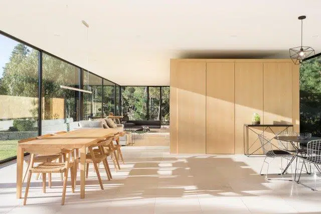Inside, the layout has been carefully planned to enhance the open feel of the home and allow the natural surroundings to flow seamlessly throughout the interior. The joinery is impeccably crafted, including discreetly integrated entertainment units to maximize storage space. Sliding walls hidden in cavities quickly transform open areas into bedrooms with separate bathrooms. Featuring a spacious modern gallery kitchen and a fully functional laundry, this cleverly designed home offers guests all the comforts expected of 6-Star living.